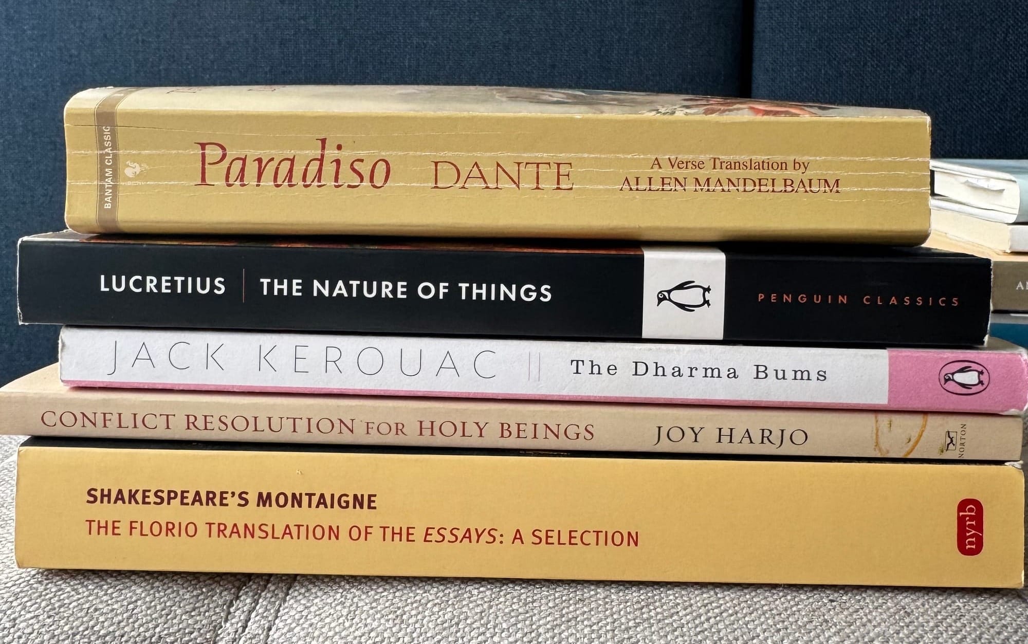 This one's largely based on my work with Professor Theoharis in my graduate studies, an incredible literature teacher who guided me through both Joyce and Dante and left me a far better reader for both. Many of these works were included in my last paper for him, which you can read here, but I've added a couple since then. Joy Harjo is my favorite American poet, a Mvskogee woman from Tulsa and a former Poet Laureate of the US. Her work is incredible and I cannot recommend it highly enough. The Nature of Things was a prescient work that anticipated particle physics thousands of years ago and nearly disappeared in the Middle Ages (read The Swerve for more on that story).