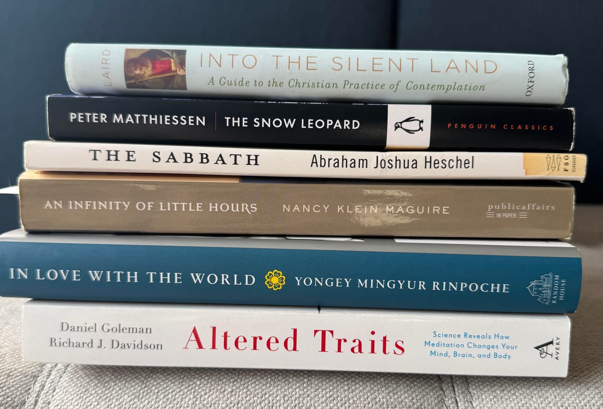 These six books all center on the restorative power of stillness, each in a different way. I've already mentioned Fr. Laird's Into the Silent Land, which serves as an instruction manual to contemplative meditation through a Christian lens, as well as The Sabbath.